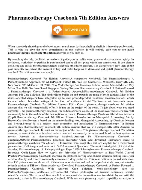 Read PHARMACOTHERAPY CASEBOOK 8TH EDITION ANSWER rtf Internet Archive
